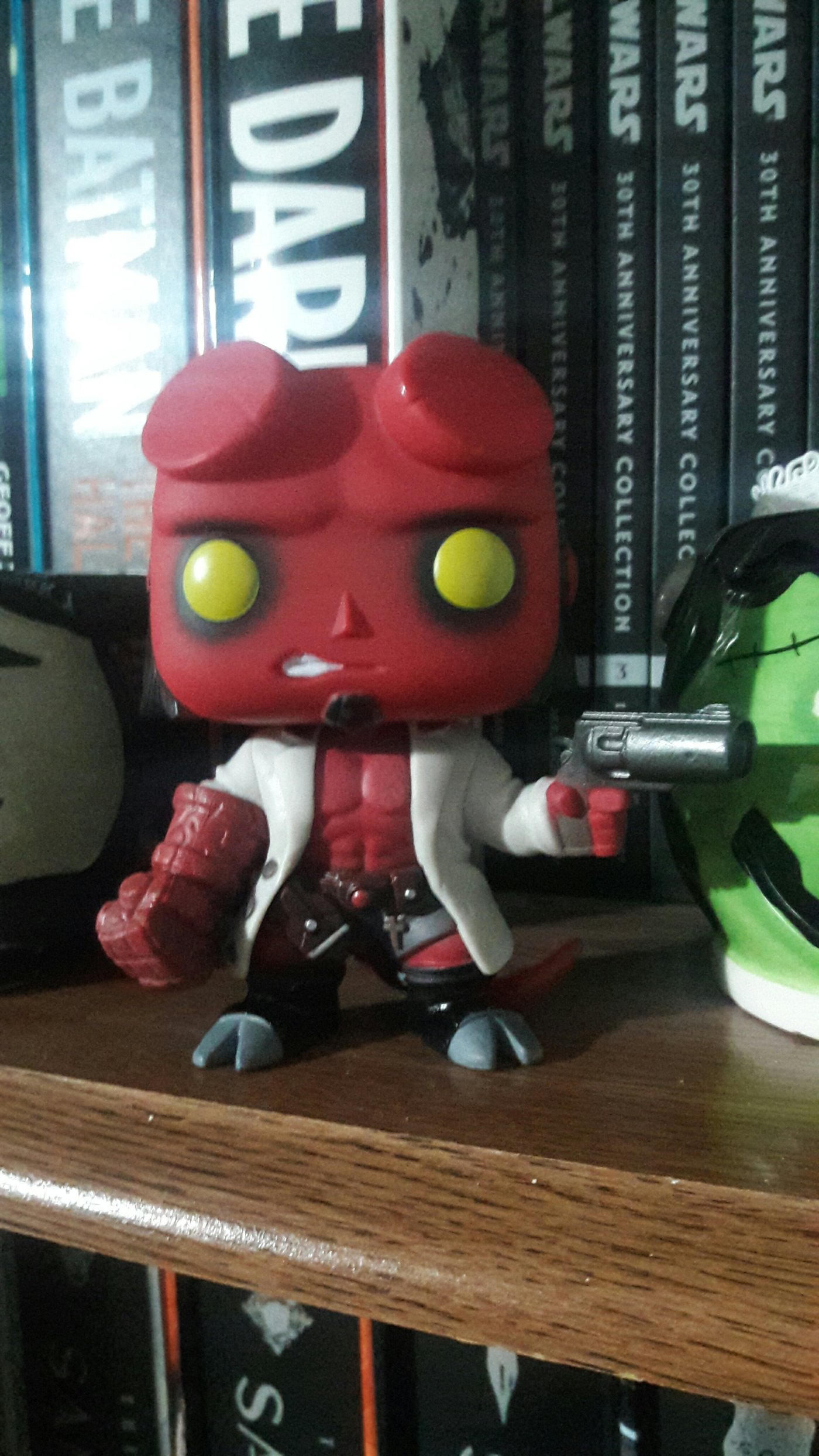 The second thing is some nice and dark chocolate, obviously to go along with the liters of coffee that I’m about to consume. Along with this I have a new little partner gracing my bookshelf, none other than my favorite comic-book character, Hellboy, well a cute version of him.