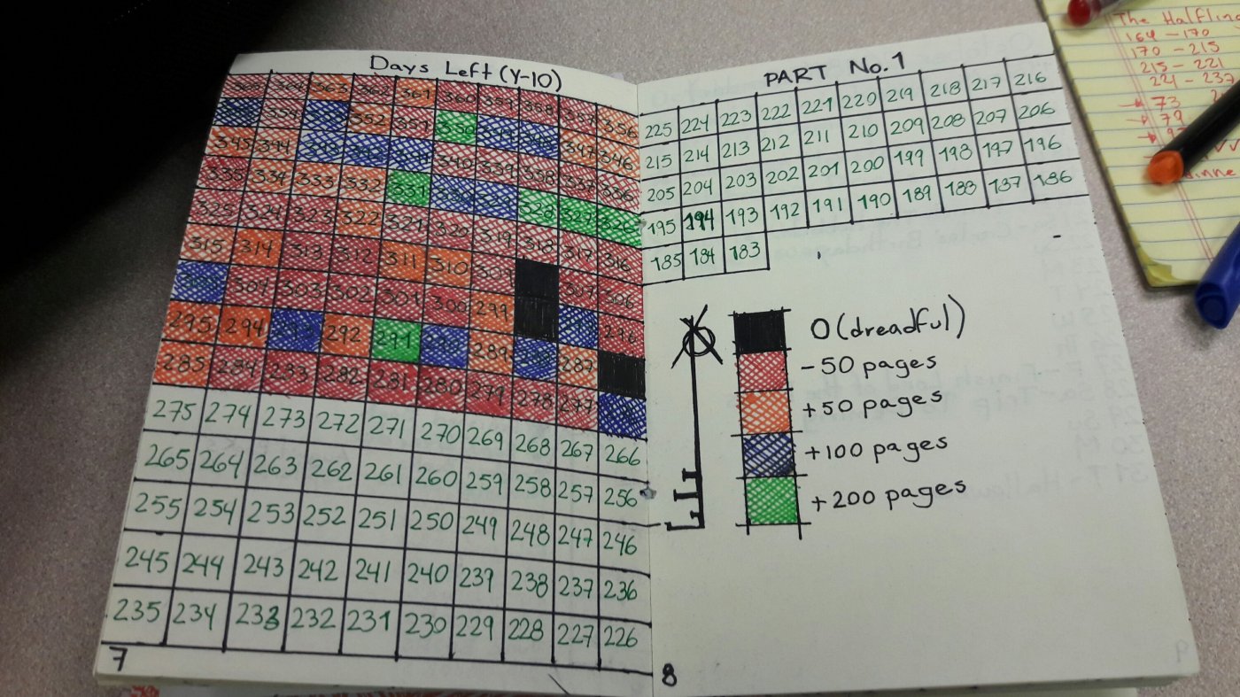 These pages above is dubbed “the colossus of the wolf” in which, I keep track of the major goal of this year, reaching those 97,000 total pages.