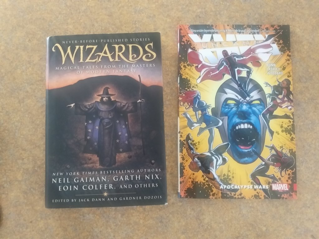 To continue with my goal of one short story per day, I’ll read the next fantastical story from the Wizards anthology, written by Elizabeth Hand, and on the neglected department of graphic novels, I’ll continue with the second volume of Cullen Bunn’s Uncanny X-men run.
