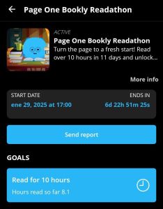 In that regard what is helping out tremendously is that the Bookly Readathon is going on right now. The minimal amount of hours of reading is set to 10 hours and the true achievement will be the top tier 45 hours from January 29 to February 9.